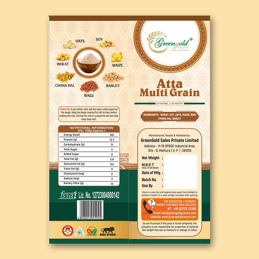 Multi-grain atta is a nutritious upgrade from regular flour, packed with wheat, oats, and barley for a healthier meal option.